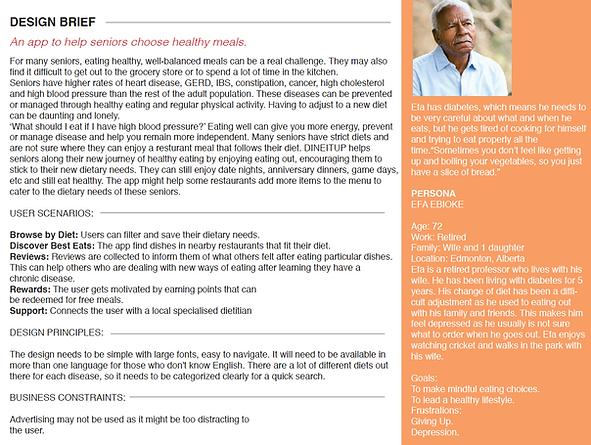 Challenge: A mockup project to develop a mobile experience that helps seniors with chronic ailments along their journey of healthy dining.